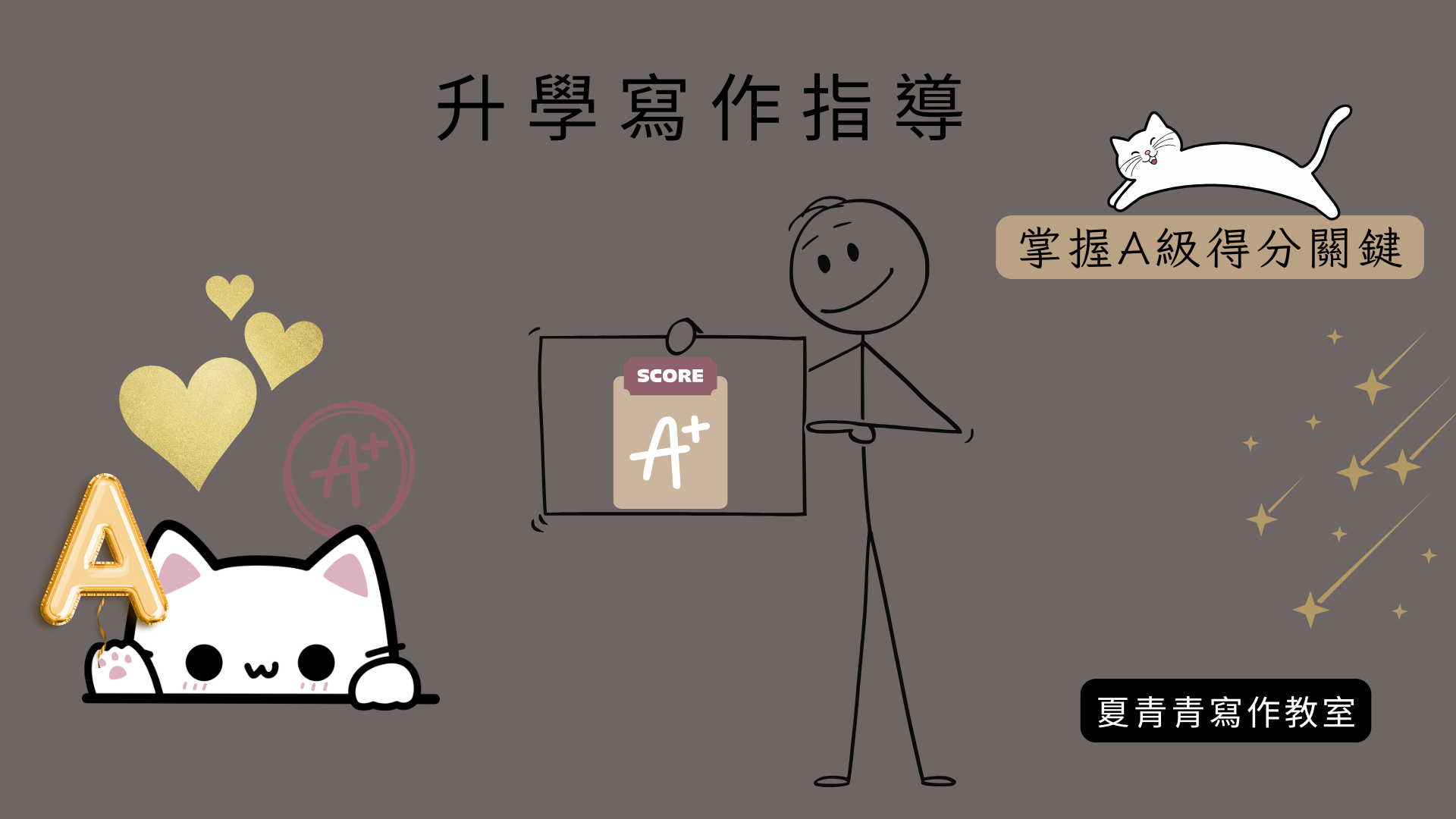我是夏青青,一位高分升學寫作指導的語文教師,能協助你快速打造專屬寫作系統,不管你的寫作程度如何,都可以快速達到A級程度!